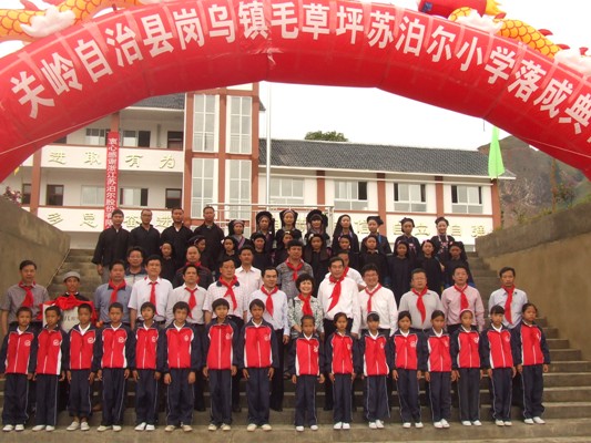 典礼最后,安顺市委陈坚书记与苏泊尔苏显泽董事长共同为毛草坪苏泊尔小学揭牌,并在当地校长的陪同下参观校园及教学楼。