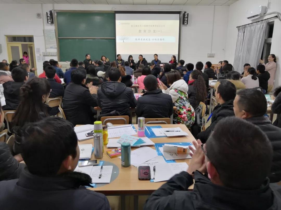 晚上的沙龙,100多位乡村教师聚在一起,共同探讨乡村教师的专业成长话题。老师们坦诚交流,教室里气氛热烈。