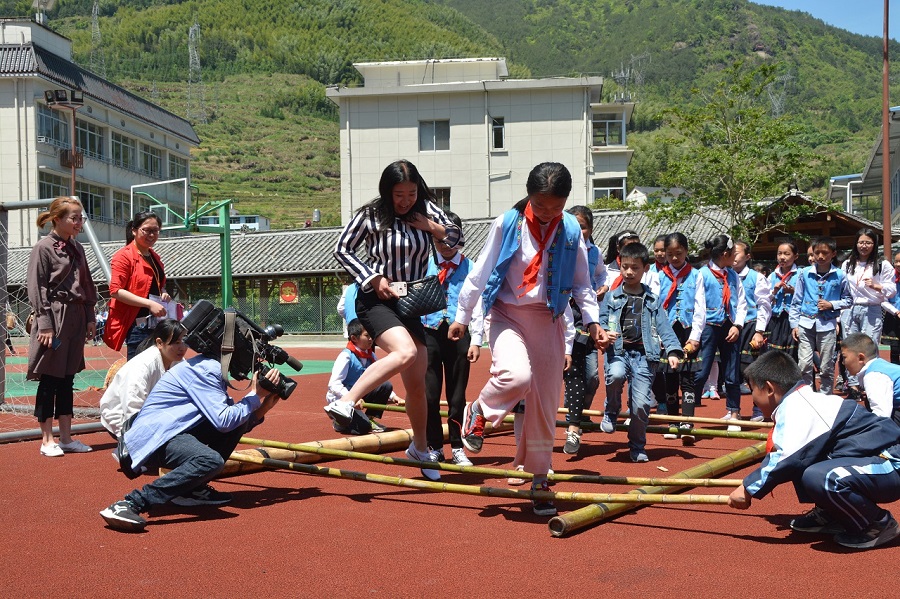 5月4日,在长坑小学和当地教育局的支持下,老师们来到丽水景宁畲族自治县,分别参观走访了当地三所“小而美”的乡村学校。东坑小学,一所充满了畲族文化的乡村“三味”小学校,所谓“三味”是景宁县当地所倡导特色乡村教育,分别为乡土味、小班味、家园味。东坑小学秉着“花样教育,做最美的自己”的教学理念育人育心,学校不仅在校园文化建设结合了畲族的特点,同时也在大课间活动融入了有趣的畲族色彩。
