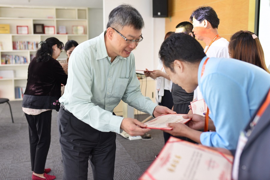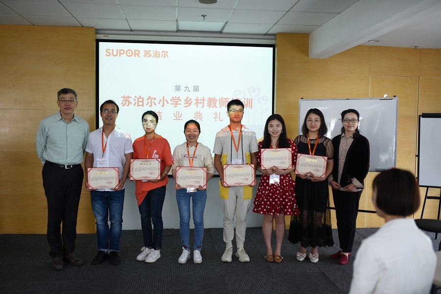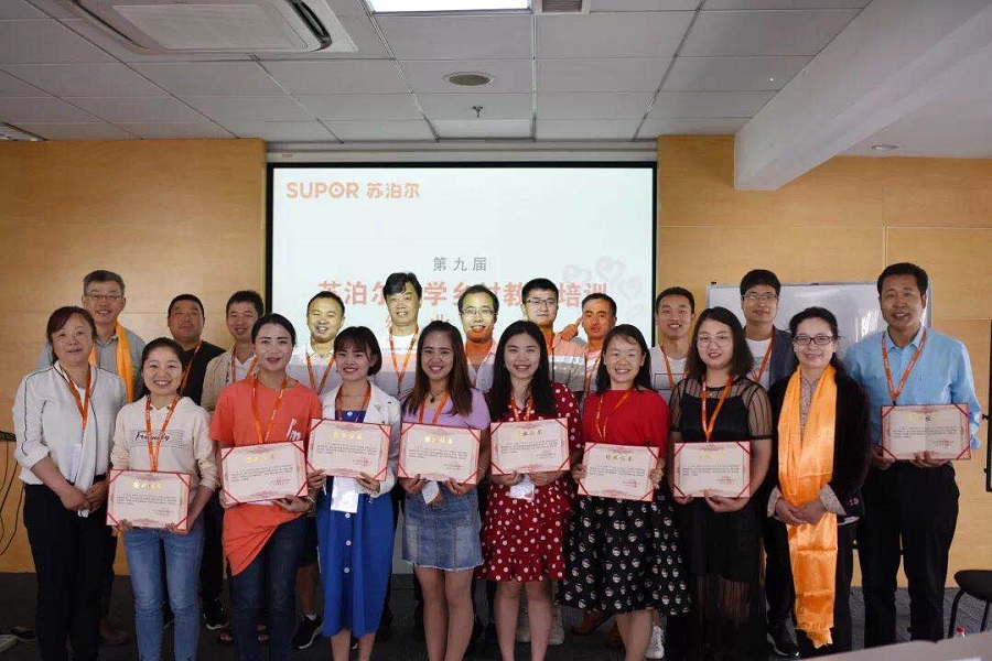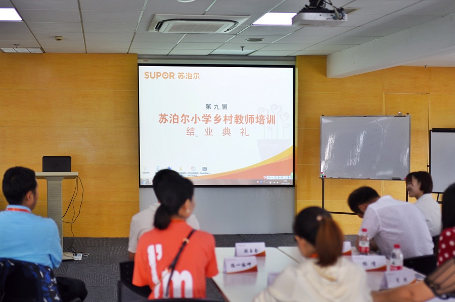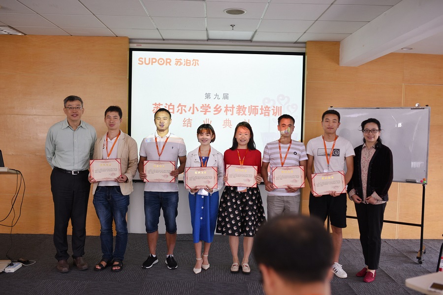 5月16日上午,第九届苏泊尔小学乡村教师培训结业典礼在公司举行,公司苏明瑞总裁和硕源基金会陈珊珊秘书长出席了典礼并为各位老师们颁发了结业证书。老师们把本次培训的一些感想和感悟分享给苏总,苏总说道:“感谢老师们扎根乡村,为乡村教育贡献力量,希望老师们把这次学习中的收获带回去,继续教育好孩子。”