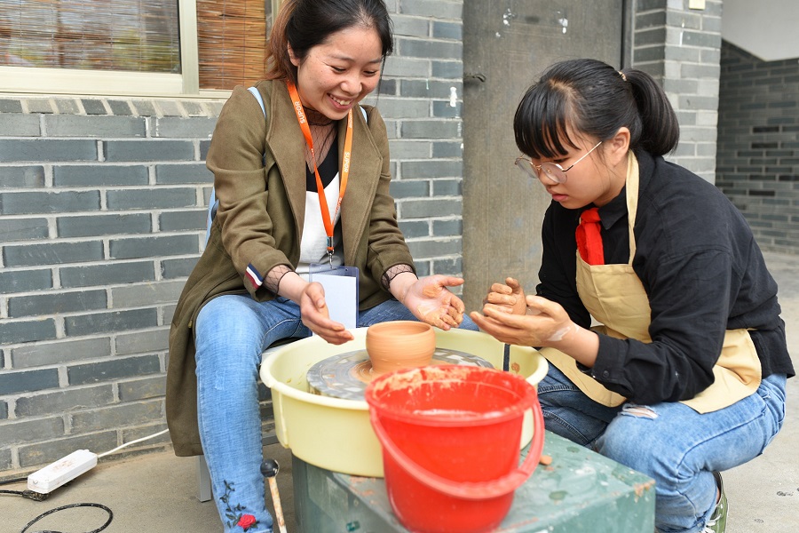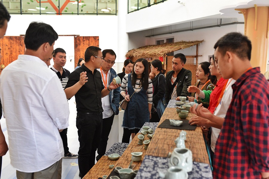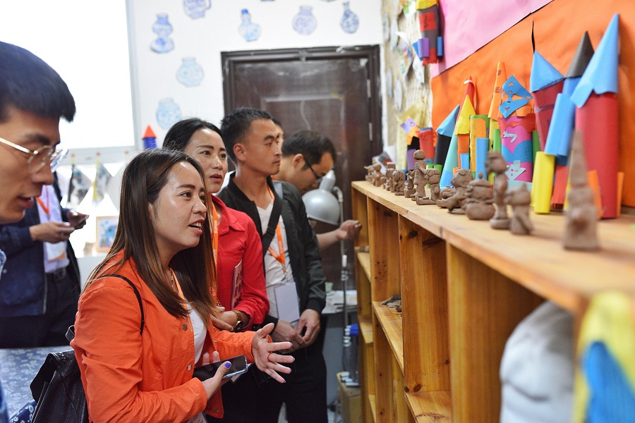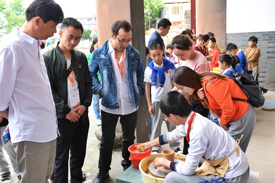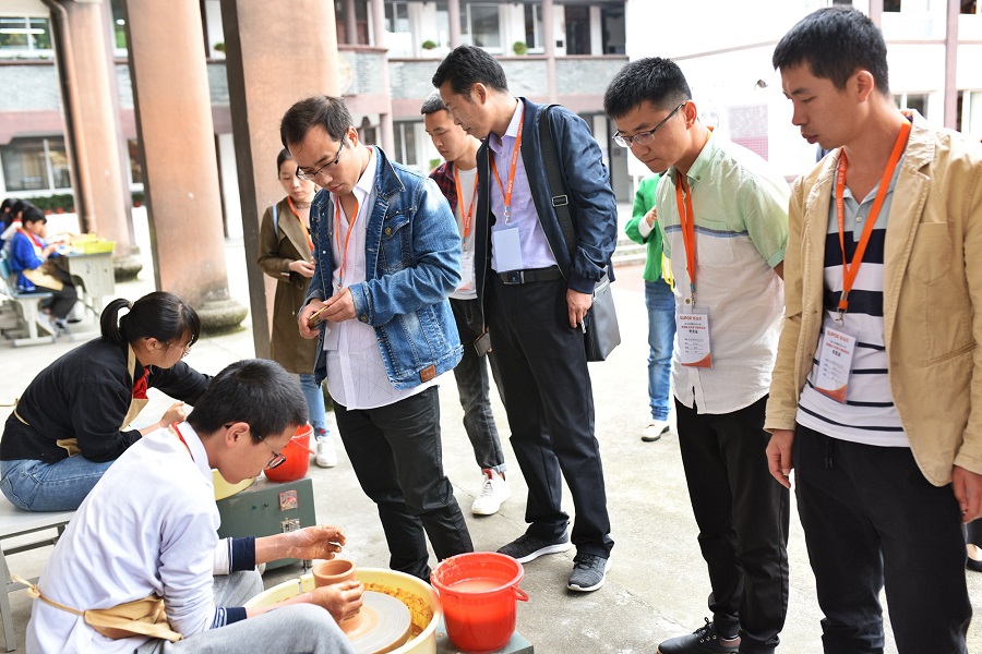 培训期间,老师们走访了小梅小学,一所非物质文化遗产和校园环境以及课程相融合的学校。老师们在曹校长的带领下参观领略了这所古朴宁静的校园,了解了学校的办学历程。学生的陶艺作品让老师们赞不绝口,大家抢着去体验一下陶艺的制作。